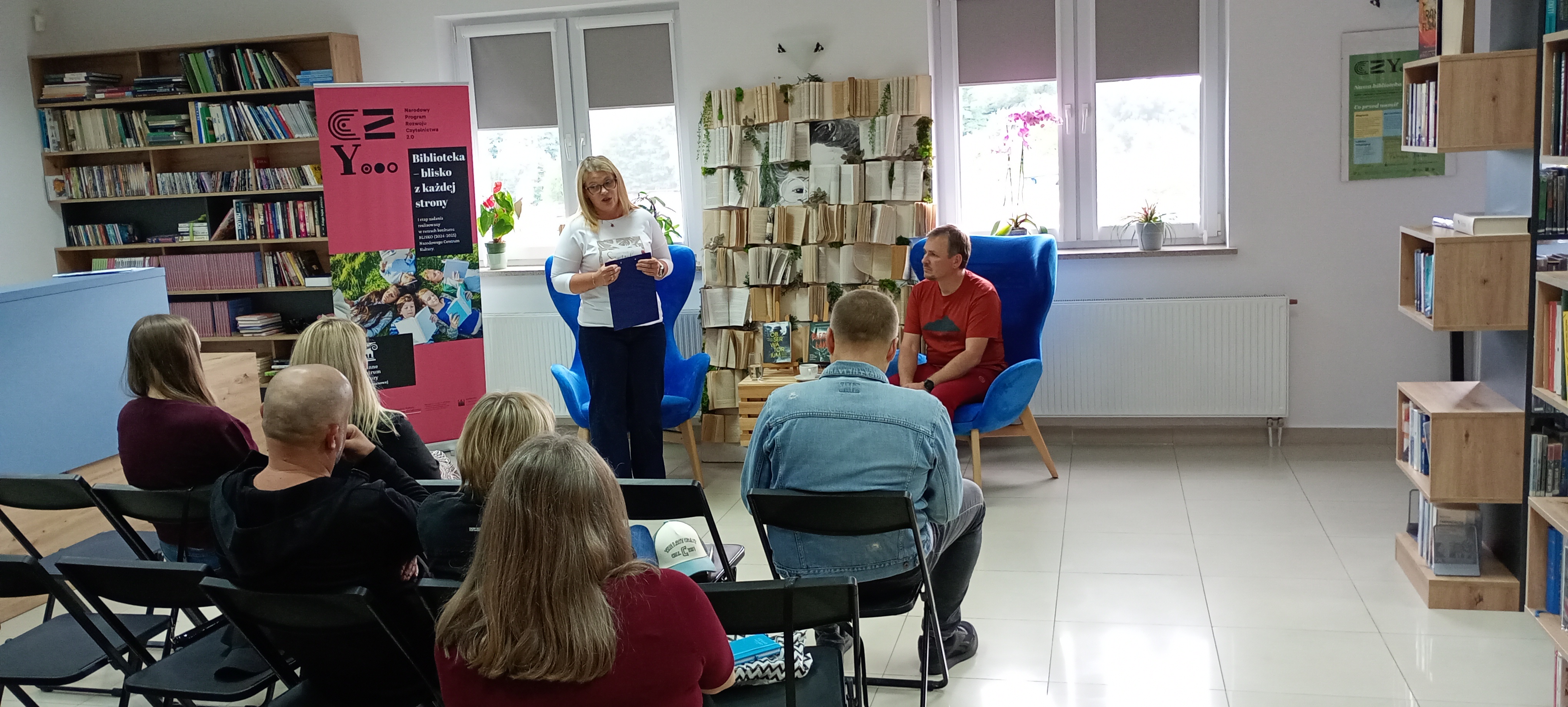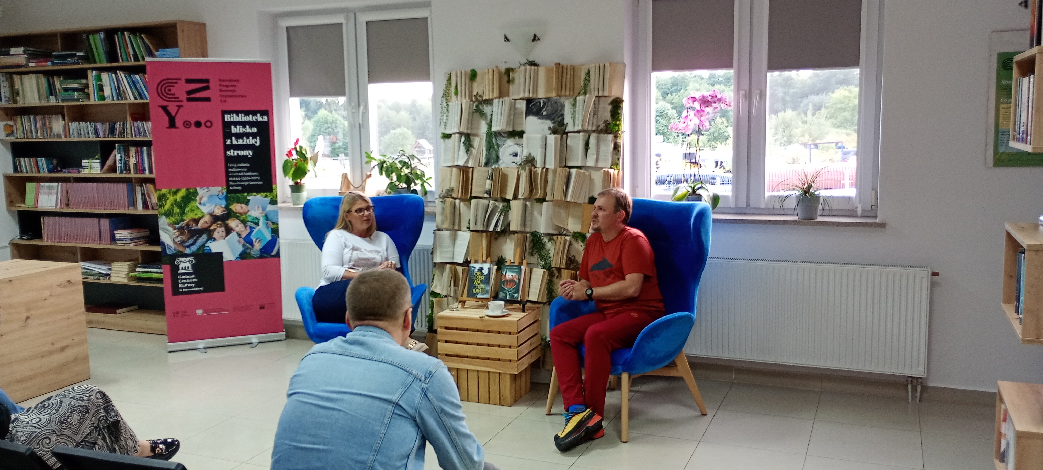 Spotkanie poprowadziła mieszkanka naszej gminy Pani Marta Kołodziej, która również jest przewodnikiem sudeckim. Nie zabrakło więc wspólnych tematów do rozmów z autorem, a łącząca rozmówców pasja do gór sprawiła,że całe spotkanie przebiegło w przyjaznej atmosferze.