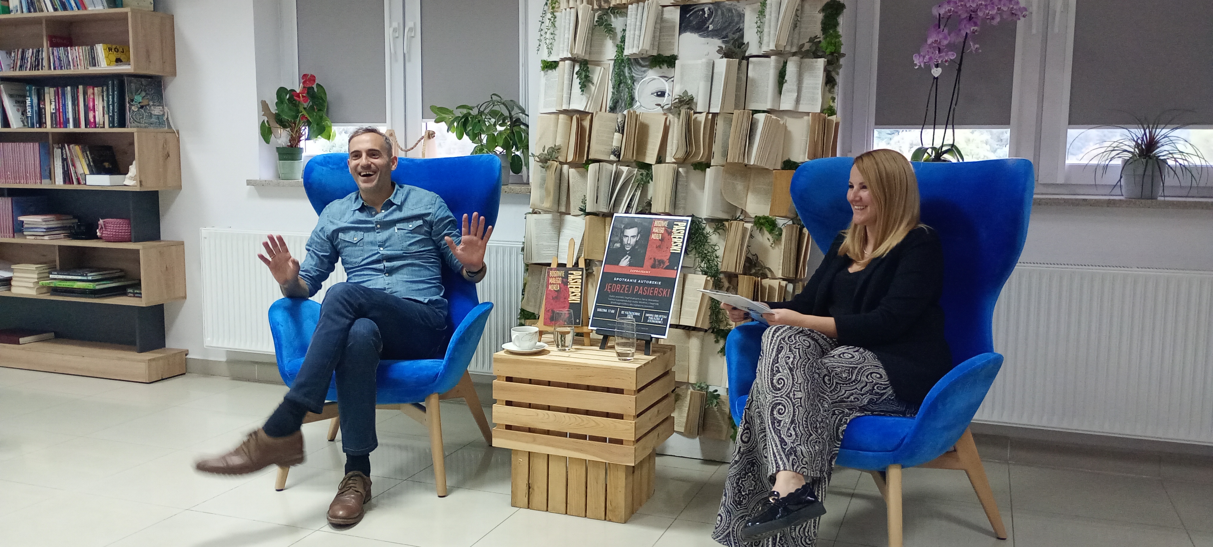 Wczoraj w naszej bibliotece odbyło się spotkanie autorskie z Panem Jędrzejem Pasierskim, autorem uwielbianej przez czytelników serii o Ninie Warwiłow, superprodukcji audio „Wodnik” oraz „Wyspa”. Wczorajsze spotkanie głównie poświęcone było najnowszej powieści autora „Bogowie małego morza”, która otwiera nowy cykl kryminalny osadzony w rejonach Jeziora Sławskiego i Sławy.